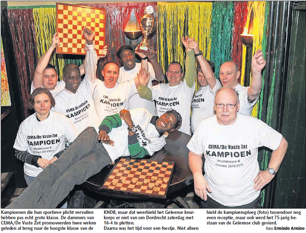 Zaterdag wordt er in Geleen gefeest. Cema/De Vaste Zet bestaat dit jaar 75 jaar, het eerste team werd onlangs kampioen in de Hoofdklasse KNDB. Alle reden dus om eens uitbundig te gaan feesten. Voor de officiële uitnodiging: Read more.